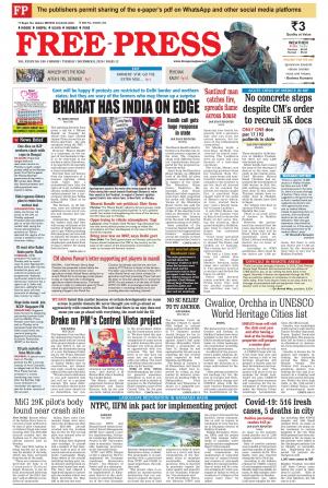 Free Press Indore : The Free Press Journal - Indore-July 09, 2019 Newspaper : Read latest news on business, bollywood, sports, technology, politics, photos, videos, education, festivals and events